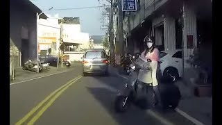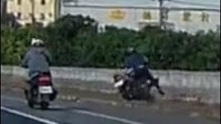 【車禍影片】 該機車右側超車太靠近人行道排水孔 導致機車失控自摔人行道 (2022.09.16 台中市大雅區雅潭路三段